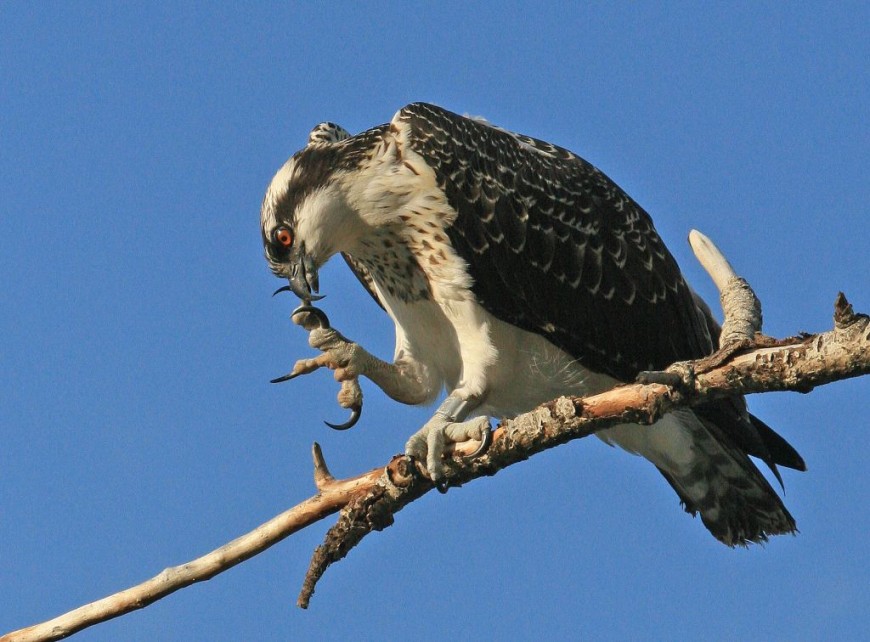 Tweedy was picking her beak after a snack of speckled trout. She caught it on her first dive and wanted her mother to know. She is a fully grown young adult with powerful wings and her Dad’s instinctive fishing abilities.
