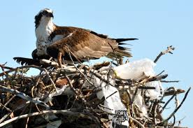 Osprey nests are large, built of sticks, and lined with bark, grass, algae. A sundry of shore line flotsam and jetsam are frequently found incorporated into their structures: plastic bags, pieces of plastic toys, fishing line and more. Ospreys have a strong desire to carry items back to their nest. They are beachcombers.