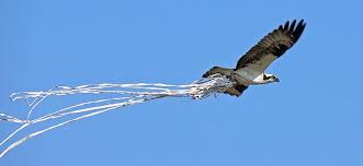 Looking at an osprey nest, one can tell how the world has changed. Writing in Ospreys: A Natural and Unnatural History, Alan Poole lists the oddities found in osprey nests in the nineteenth century: a rag doll; a small doormat; a toy sailboat complete with sail; a feather duster; barrel staves and hoops; a boot-jack; 20 feet of hem rope; a blacking brush; a remnant from an oilskin rain slicker; and bleached-out bones from domestic animals like cattle and sheep. Now, in the twenty first century we find: rubber boots; bicycle tires; Hula Hoops; sections of television antennas; bikini tops; styrofoam cups and plastic hamburger containers.