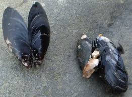 Bivalves are mollusks. They possess two shells which hinge at one edge and can be closed tightly when threatened or out of the water. They are filter feeders gaining nourishment by filtering tiny organisms and digestible debris (detitus) from the water. Some are sedentary, attaching themselves to a substrate (oysters, mussels), some burrow and move around on the bottom (clams) and a few can swim (scallops).
