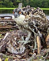 When Jesse looks directly into the camera, you can clearly see the characteristic orange eyes of the juvenile Osprey. The other characteristic of the juvenile Osprey is the expanded white tip of their primary feathers. You can usually use these 2 characteristics to identify a juvenile. They persist for up to one and a half years