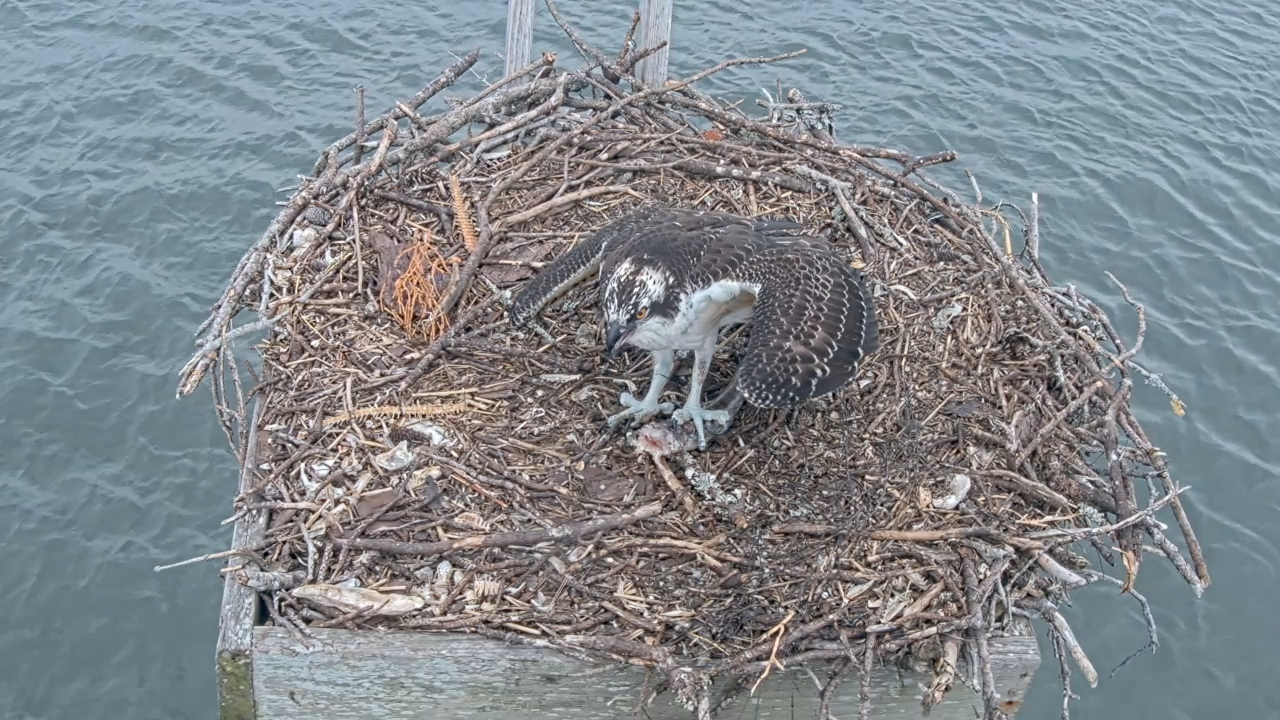 Empty nest; ………Empty nest: a good thing. Sky has been away for two days, fishing on her own. The Doctor saw her eating a fish on the live oak tree. Independent………. Self-sufficient… Very proud of herself. Just the slow learner you know.……….